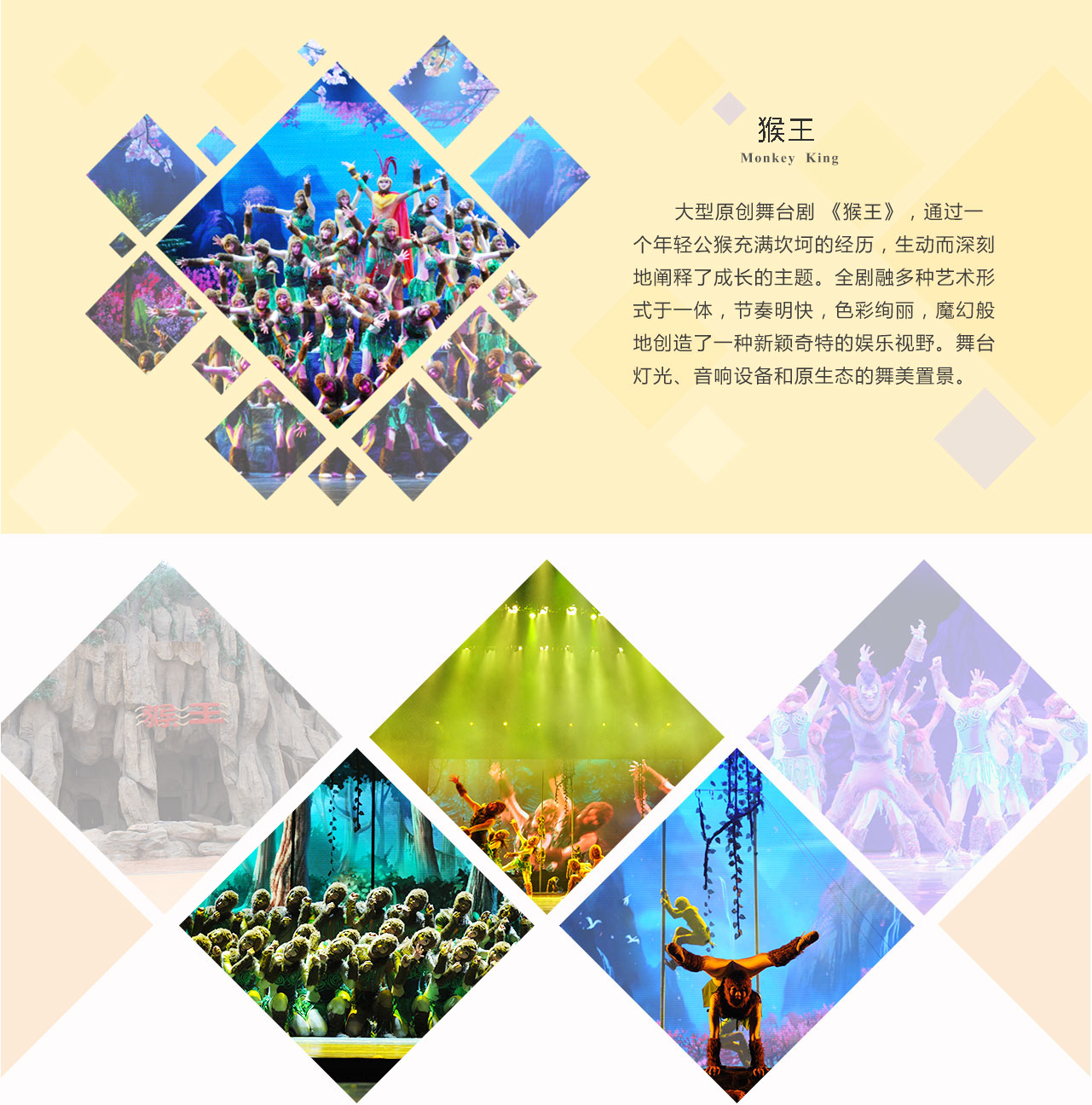 華強(qiáng)方特借助在自動(dòng)控制、人工智能、機(jī)械設(shè)備、影視特技等方面的優(yōu)勢(shì),成功打造"猴王"、"飛翔之歌"、"孟姜女"等多個(gè)令人嘆為觀止的主題演藝項(xiàng)目,以現(xiàn)代高科技表現(xiàn)手段為核心,集合現(xiàn)代音樂、舞蹈、雜技、武術(shù)、戲劇、多媒體等多種藝術(shù)要素于一體,呈現(xiàn)氣勢(shì)磅礴,美輪美奐的舞臺(tái)效果。其中,大型程控矩陣真人舞臺(tái)表演項(xiàng)目《孟姜女》榮獲2015 IAAPA"銅環(huán)獎(jiǎng)"特別頒發(fā)的最震撼人心獎(jiǎng),大型演藝項(xiàng)目《猴王》摘得2014 IAAPA"銅環(huán)獎(jiǎng)"最佳現(xiàn)場(chǎng)演出獎(jiǎng),演藝劇目《在馬戲團(tuán)的日子》獲得第八屆中國(guó)舞蹈"荷花獎(jiǎng)"當(dāng)代舞表演銀獎(jiǎng)。