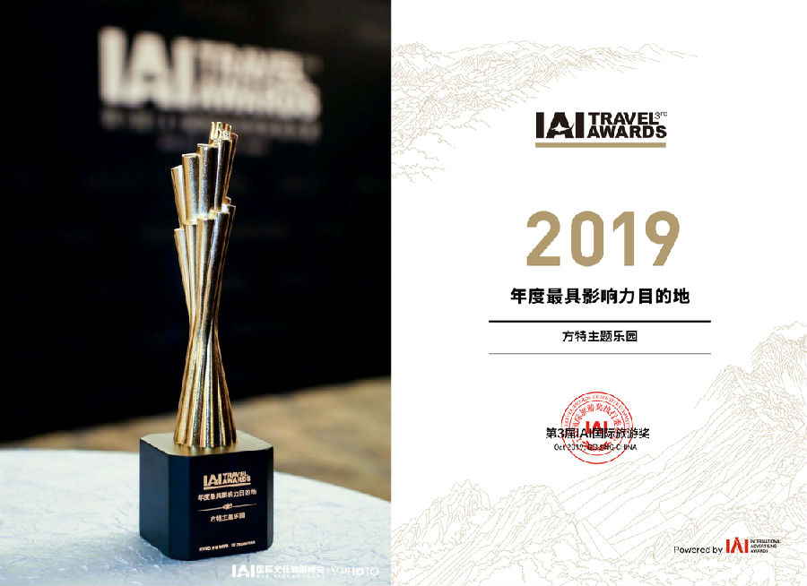 IAI國際旅游獎旨在嘉獎全球旅游營銷界年度創新并具有廣泛影響力的旅游營銷案例,是旅游營銷潮流趨勢的風向標。此次方特主題樂園獲頒IAI國際旅游獎“2019年度最具影響力目的地”,體現出權威機構對方特主題樂園卓越品質和優異成績的認可。