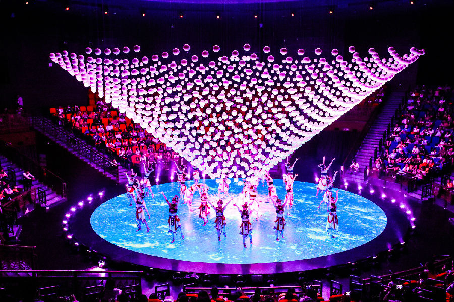 南寧方特東盟神畫是華強方特集團以東盟十國歷史文化、風(fēng)土人情為背景打造的高科技文化主題樂園,已連續(xù)兩年成為東盟博覽會文化交流分會場,并接待過多位東盟國家政要和眾多東南亞游客,有效承擔(dān)起中國-東盟區(qū)域文化互動交流與區(qū)域旅游休閑的雙重作用?!肚u之歌》作為南寧方特東盟神畫的明星項目,以印尼民族藝術(shù)和民俗文化等內(nèi)容為創(chuàng)作背景,采用新穎的多媒體表現(xiàn)形式,通過數(shù)字程控技術(shù)控制數(shù)百只小球不斷變化造型組合,并與美輪美奐的真人舞臺表演相結(jié)合,為游客打造出一幅極具沉浸式體驗的印度尼西亞風(fēng)情畫卷。自2018年8月南寧方特東盟神畫開業(yè)運營以來,《千島之歌》一直是南寧方特最受歡迎、好評最多的主題項目之一,已累計開放近800場,接待游客近80萬人次。