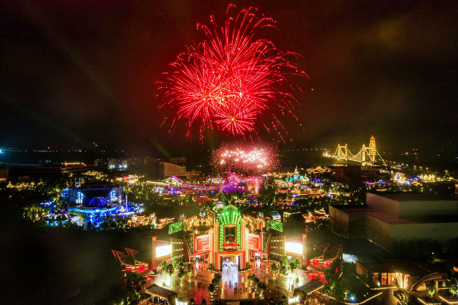 除了眾多高科技紅色主題項目,贛州方特還為游客設計建造了“王朝印記”“都會記憶”“崢嶸歲月”等六大主題區域。從刷著“十萬工農下吉安”紅軍宣傳標語的瑞金街,到設有“東商洋貨”和“寶麗唱片行”的“十里洋場”上海街、京味十足的北平街、港風濃郁的香港街,逼真的時空穿越感讓人身臨其境、流連忘返。夜幕降臨,別具特色的風情演藝也將與璀璨壯觀的主題煙花秀相互交織,一同點亮贛州之夜。