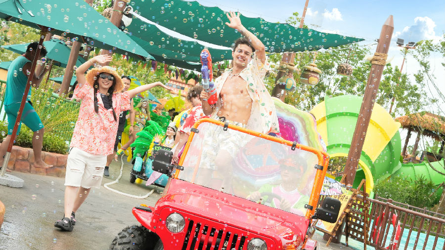 開園之際,臺(tái)州方特水上樂(lè)園還推出了一系列精彩紛呈的活動(dòng)。游客們不僅能欣賞精彩的主題演藝,還能參與各色互動(dòng)演出,在激蕩的浪花和動(dòng)感的音樂(lè)聲中暢享夏日。