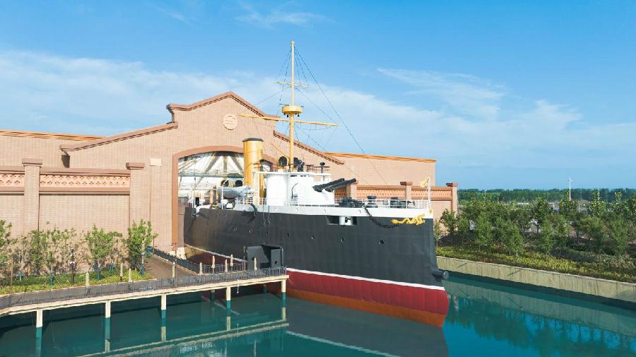 在大型室內(nèi)有軌漂流項(xiàng)目《致遠(yuǎn) 致遠(yuǎn)》中,游客乘坐智能運(yùn)載船穿過時間長河,置身一個多世紀(jì)前巨浪滔天的海戰(zhàn)現(xiàn)場,身臨其境地目睹民族英雄浴血奮戰(zhàn)的壯烈景象,見證北洋水師名艦“致遠(yuǎn)”號的傳奇一生。