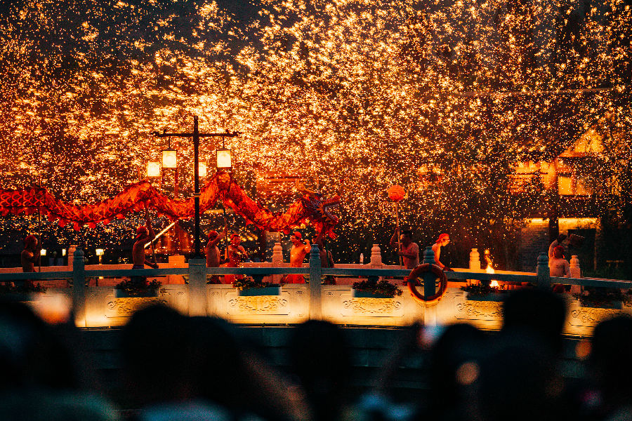 憶年俗,尋年味。綿陽方特融合非遺表演和傳統市集,為游客開啟新春精彩,齊天大圣、山海女神、飛天鳳凰……高科技“山海燈會”點亮新歲,更有千架無人機震撼上演“神龍吐息”。徐州方特精心打造大風歌漢韻集市,文創、美食、漢風等地方特色文化齊聚,與游客吃喝玩樂過大年。天津方特誠邀游客打卡樂呵小鎮、哏兒都廟會,觀賞國粹非遺匯演,感受地道“津味兒”。