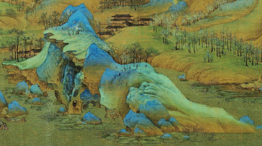 《千里江山圖》以1191.5厘米長卷形式描繪了連綿的群山岡巒和浩淼的江河湖水,期間點綴舟船橋梁、樓臺殿閣,還穿插捕魚、駛船、游玩等動景,可謂千里江山,處處是景。為了完美再現這一中國青綠山水畫的巔峰之作,華強方特的技術團隊自2017年7月起就潛心研究,從線稿、三維模型到上色再到立體呈現,每一步都竭盡全力,力求做到忠于原畫。