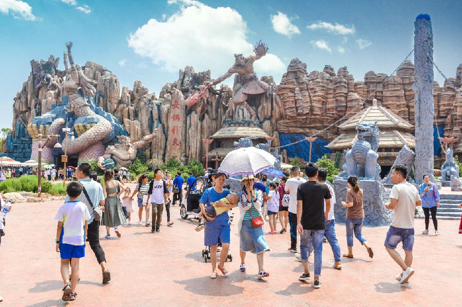 首批到來(lái)的客人使園區(qū)變得十分熱鬧,各處都能聽(tīng)到游客們的歡笑聲。在各大主題游樂(lè)項(xiàng)目前,游客絡(luò)繹不絕,《孟姜女》、《牛郎織女》、《九州神韻》、《女媧補(bǔ)天》等室內(nèi)文化體驗(yàn)項(xiàng)目尤其受到親子家庭的歡迎。