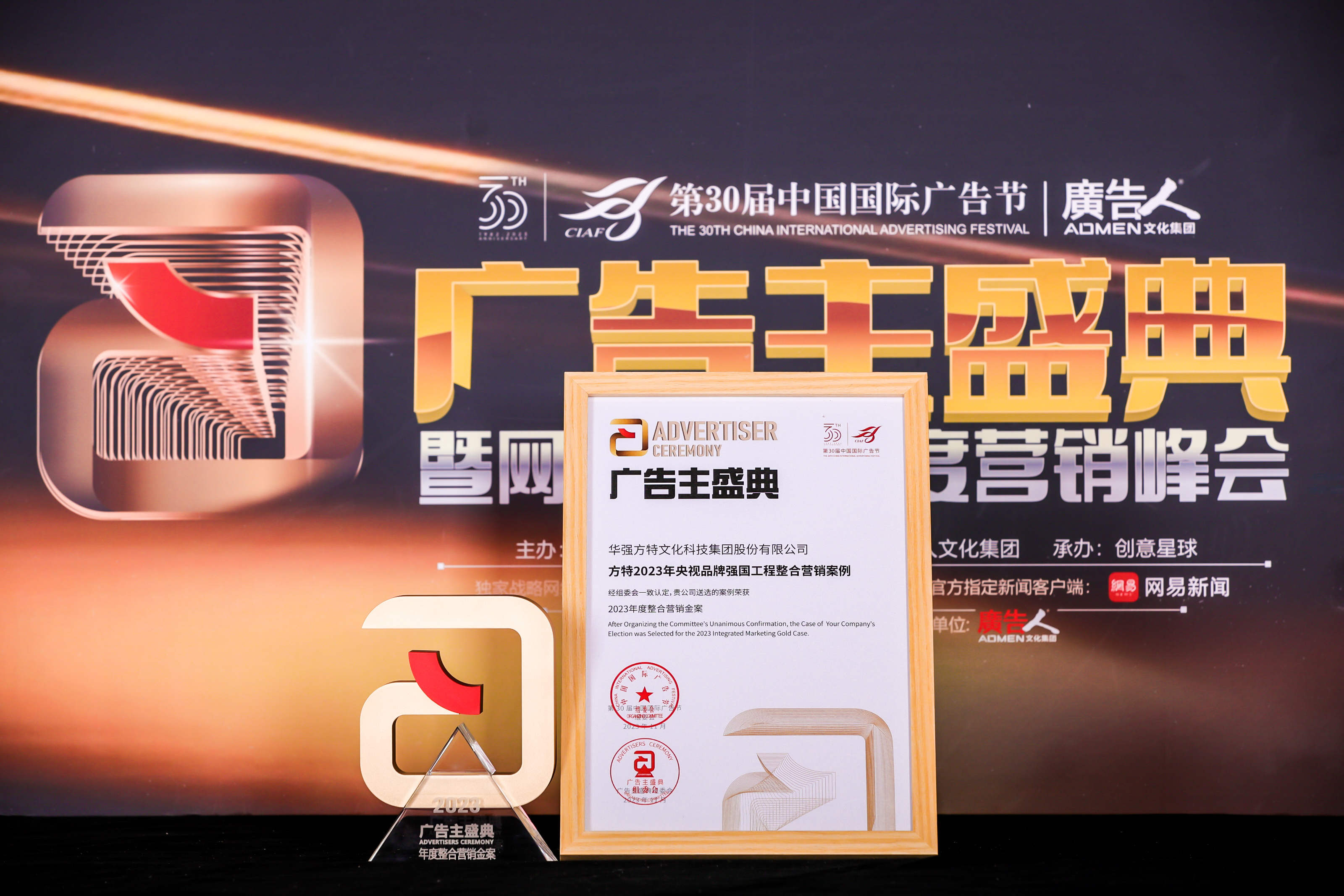 近日,第30屆“中國國際廣告節(jié)?廣告主盛典”在廈門落下帷幕。在數(shù)百位廣告主企業(yè)、媒體平臺、品牌服務(wù)機構(gòu)的代表見證下,由華強方特集團選送的“方特2023年央視品牌強國工程整合營銷案例”,憑借國家級媒體和文旅領(lǐng)跑企業(yè)跨領(lǐng)域、全方位的出色合作,摘得“2023年度整合..