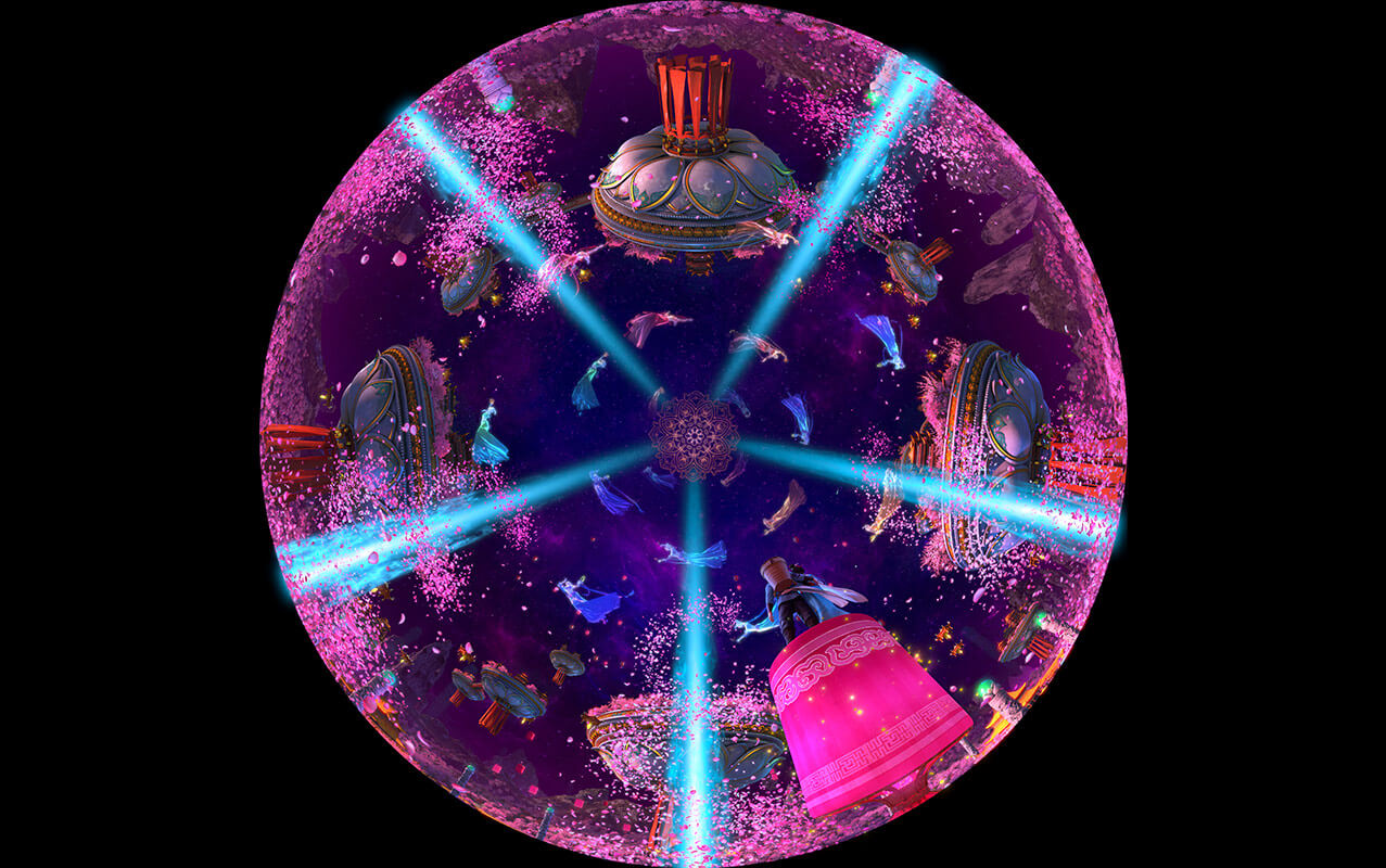 《牛郎織女》項(xiàng)目作為室內(nèi)升降式穹頂影片的代表。使用真人實(shí)拍結(jié)合三維的形式,重新演繹經(jīng)典愛(ài)情神話傳說(shuō)“七夕鵲橋戀”。重點(diǎn)展現(xiàn)了牛郎飛上天庭尋妻,與織女鵲橋相會(huì)的情節(jié),并將其打造成為一個(gè)恢弘絢麗的魔幻歷險(xiǎn)題材主題項(xiàng)目。